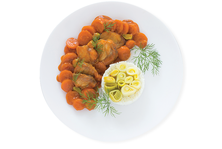 Avec sa sauce au Cognac relevée d’une pointe d’ail et paprika, cette recette parfumée se prête à de délicats mélanges de texture. Une fondue de poireaux ou encore un riz pilaf accompagneront à merveille la fermeté de la lotte et ses petits légumes.
